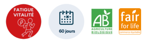 * Ingrédients issus de l’agriculture biologique. Commerce équitable contrôlé selon le référentiel Fair For Life : 61,53% des ingrédients.
