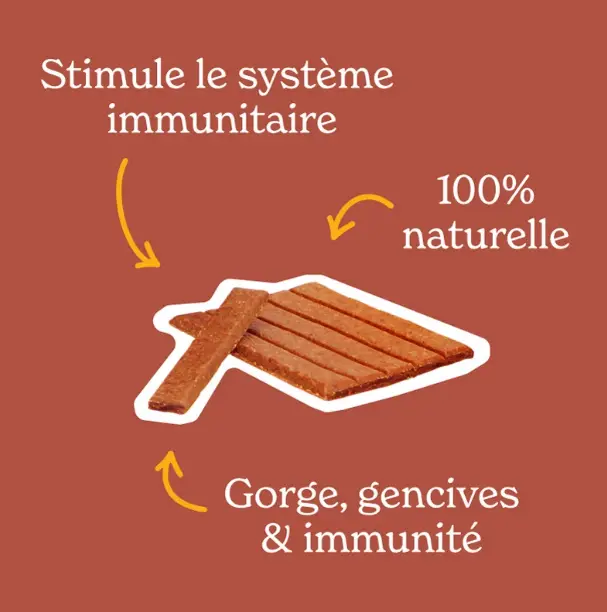 Chauffer doucement une de ces petites barres en la mastiquant pour libérer tous les actifs de cette propolis en bouche. A garder dans la bouche 15 minutes minimum, ou jusqu'à sa désagrégation.