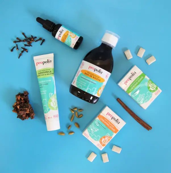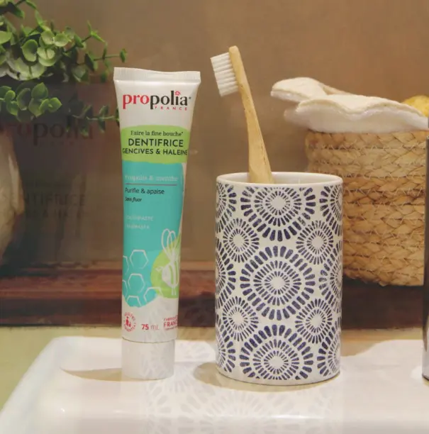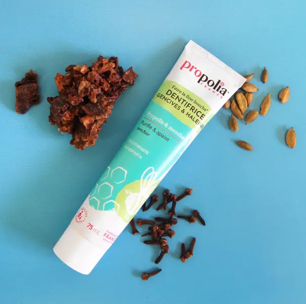 - La propolis teinte naturellement les poils de la brosse à dents, mais pas les dents.
