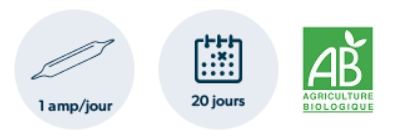 •1 ampoule par jour : à prendre le matin diluée dans un grand verre d'eau.