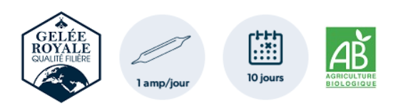 - 1 ampoule par jour pendant 10 jours, renouvelable.