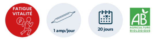 - 1 ampoule par jour de préférence le matin à diluer dans un verre d'eau.