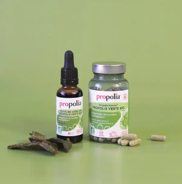 Idéales à l'approche de l'hiver ou lors des changements de saison ces gélules sont fortement dosées en propolis verte purifiée (42%) récoltée sur le Baccharis Dracunculifolia au sud du Brésil. Riche en polyphénols et flavonoïdes, la propolis verte contient de l'artépiline C reconnue pour ses vertus.